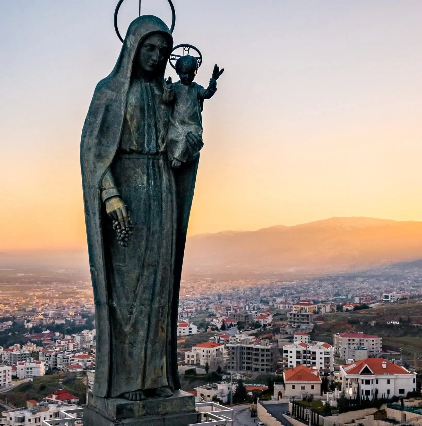 يعلو المدينة فاتحًا ذراعيه باتجاه أهل البقاع، في رمز للحماية والسلام.
