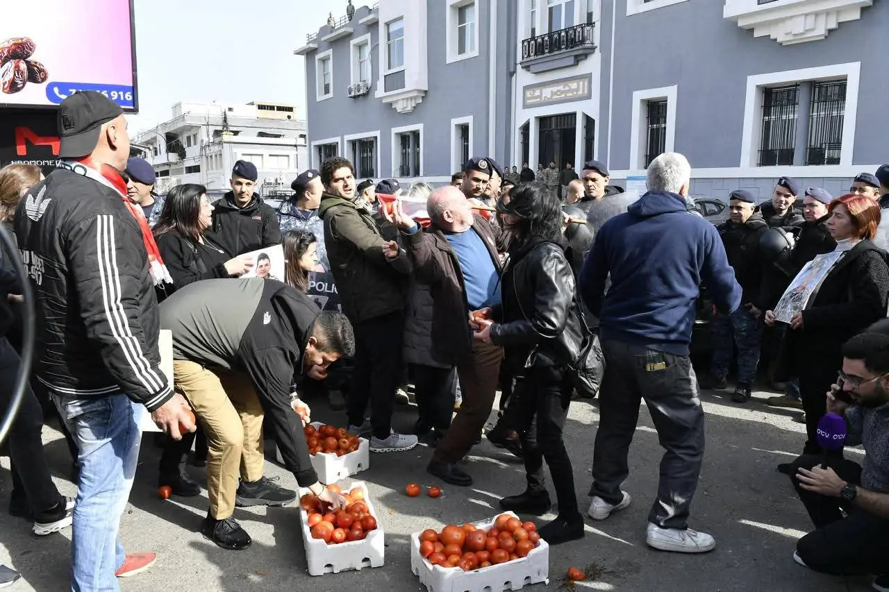 وقاموا برشق المبنى بالبندورة.